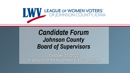 - League of Women Voters Johnson County Board of Supervisors Candidate Forum (Oct. 11, 2022)