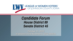 - League of Women Voters Iowa House District 89 and Senate District 45 Candidate Forum (Oct. 11, 2022)