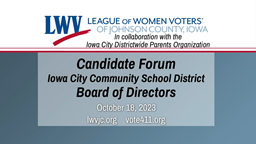 - League of Women Voters Iowa City School Board Candidate Forum (Oct. 18, 2023)