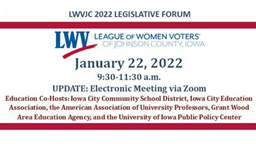 - League of Women Voters Legislative Forum (Jan. 22, 2022)
