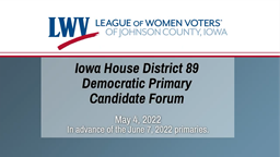 - League of Women Voters Iowa House District 89 Democratic Primary Candidate Forum (May 4, 2022)