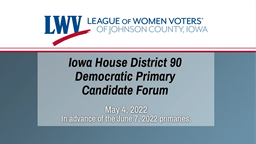 - League of Women Voters Iowa House District 90 Democratic Primary Candidate Forum (May 4, 2022)