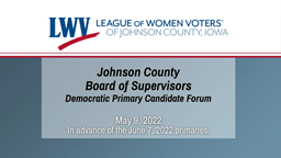 - League of Women Voters Johnson County Board of Supervisors Democratic Candidate Forum (May 9, 2022)