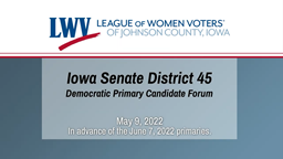 - League of Women Voters Iowa Senate District 45 Democratic Primary Candidate Forum (May 9, 2022)